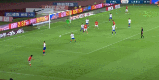 第66分钟,高准翼左路传中,艾克森禁区内高高跃起头球入网,广州2比0领先。