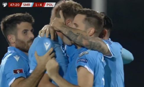圣马力诺(4-4-2):贝内德蒂尼/巴蒂斯蒂尼、法布里、丹特-罗西、格兰多尼/穆拉罗尼、鲁纳代、戈利努齐、塞卡洛利/南尼、法比奥-托马斯尼